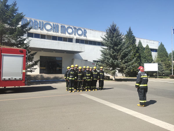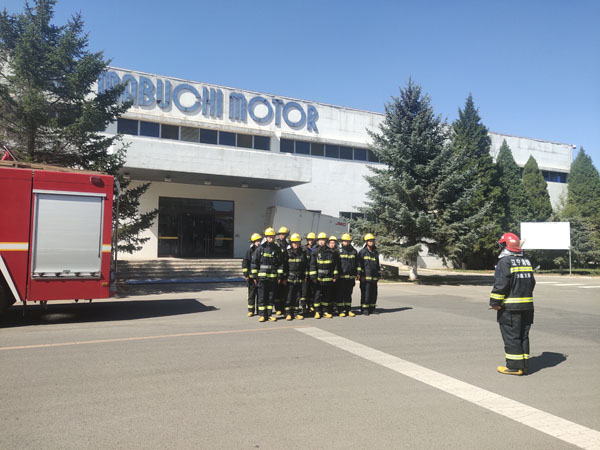 老虎屯消防中隊到萬寶至萬達工作現(xiàn)場做模擬實戰(zhàn)演習